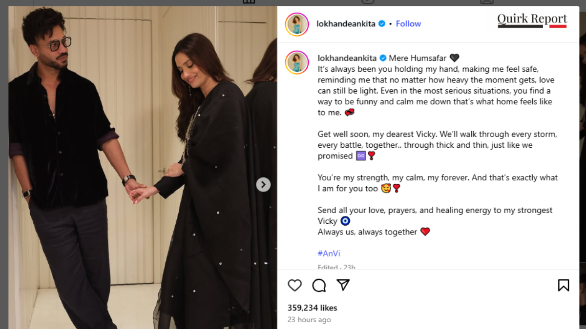 Entertainment news circles lit up after actor Ankita Lokhande shared a touching Instagram post for her husband, businessman Vicky Jain. The post came days after Vicky’s home accident left him with 45 stitches and a three-day hospital stay. Ankita’s words reveal how the couple is facing the challenge with love and humour.